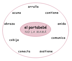 El uso de estos objetos de sostén y traslado no solo sirve para mantener cerca al bebé (necesidad primaria) ya que configura una solución efectiva para combinar trabajo y maternidad. El cabestrillo, le permite al bebé adoptar una postura cómoda y al mismo tiempo libera los brazos de la madre para recoger frutos, sembrar o tejer. Hoy en día podemos encontrar publicidades de “portabebés”, cuyo marketing de venta se basa en imágenes en las cuales muestran a las mamás con sus brazos “libres” hablando por celular, mientras cargan a su hijo. Es cierto que hoy en día el teléfono celular es utilizado como herramienta de trabajo, el riesgo es que se tome como un recurso para mantener cerca corporalmente al bebé, pero alejado en cuanto a una relación sensible con él, que permita percibir sus sensaciones y dialogar con las herramientas del lenguaje no verbal para las cuales los bebés están abiertos para captar y responder. Es interesante observar las propagandas de estos “portabebés” tanto en imagen visual, como las palabras y frases que acompañan las fotografías, que se sustentan en el conocimiento de la verdadera función de sostén desde el aspecto del desarrollo emocional, por ejemplo: “una manera amorosa segura y muy anatómica para llevar a tu bebé” “llevalo cómodo y seguro desde el primer día de vida,